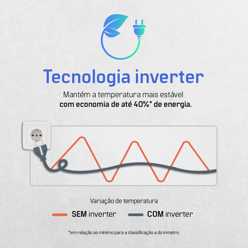 Economize energia e desfrute de um ambiente sempre agradável, graças ao ajuste preciso da temperatura. O compressor ajusta sua velocidade de acordo com a necessidade do ambiente, evitando picos de consumo e garantindo um clima estável.