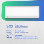 Personalize o seu conforto com as funções Sleep, Turbo e Timer. Durma tranquilo com o modo Sleep, que mantém a temperatura ideal durante a noite, e refresque o ambiente rapidamente com o modo Turbo.