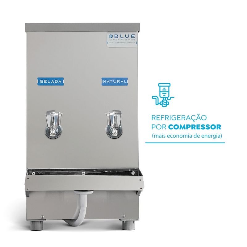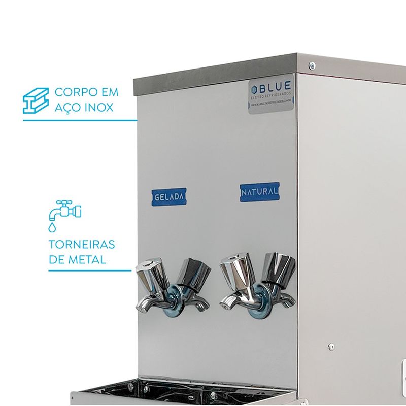 Bebedouro Purificador Industrial Blue Bancada 2 Torneiras Natural e Gelada 20L Inox PIB20L127VN-2T