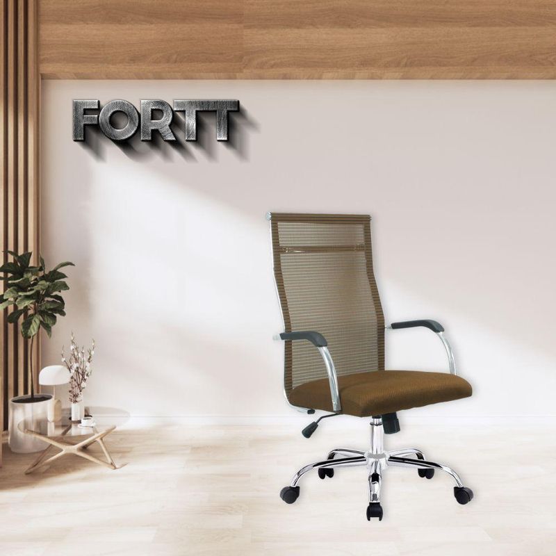 Cadeira de Escritório Esteirinha Tela Mesh Base Cromada com Rodinha Fortt Salta Marrom - CEF04-P