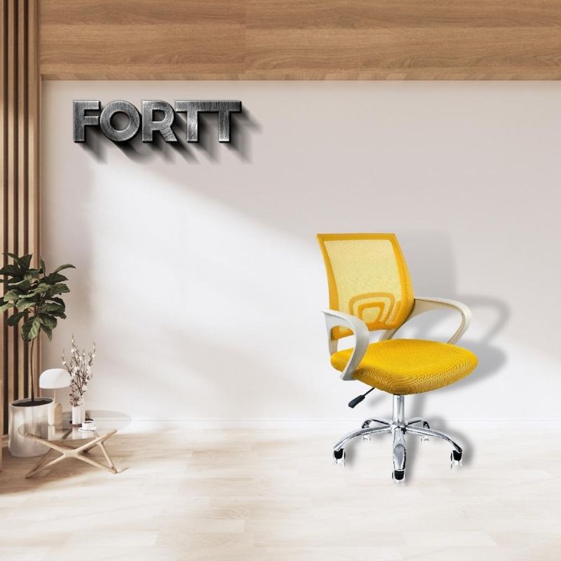 Cadeira de Escritório Secretária Base Cromada com Rodinha Fortt Lisboa Amarela - CSF02-AM