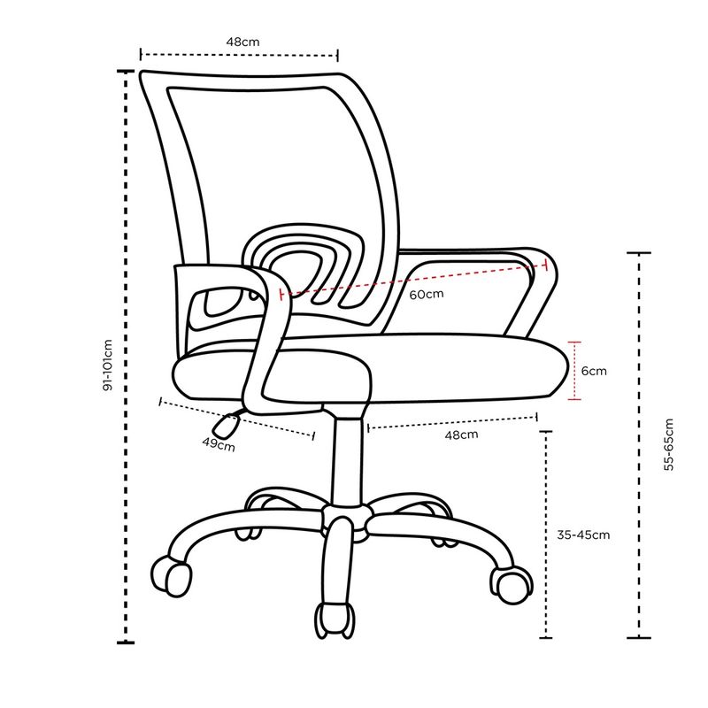 Diferente da cadeira com sua base fixa, a cadeira giratória permite que você gire 360 graus facilitando e trazendo velocidade ao seu deslocamento quando necessário, seja ao redor da mesa no seu ambiente de trabalho ou em sua residência.