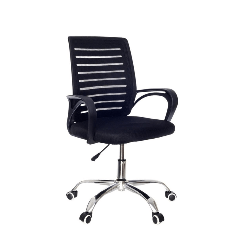 Diferente da cadeira com sua base fixa, a cadeira giratória permite que você gire 360 graus facilitando e trazendo velocidade ao seu deslocamento quando necessário, seja ao redor da mesa no seu ambiente de trabalho ou em sua residência.