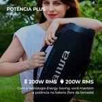 Sinta a experiência sonora impactante com os 200W RMS de potência da caixa portátil AIWA. Você será levado pela música com graves mais profundos e som potente. E, com a tecnologia Energy Saving, você mantém os 200W de potência até ouvindo música na bateria (fora da tomada).