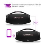 Com a tecnologia TWS (True Wireless Sound), você sincroniza duas Boombox Plus AWS -BBS-01 e duplica a potência sonora.