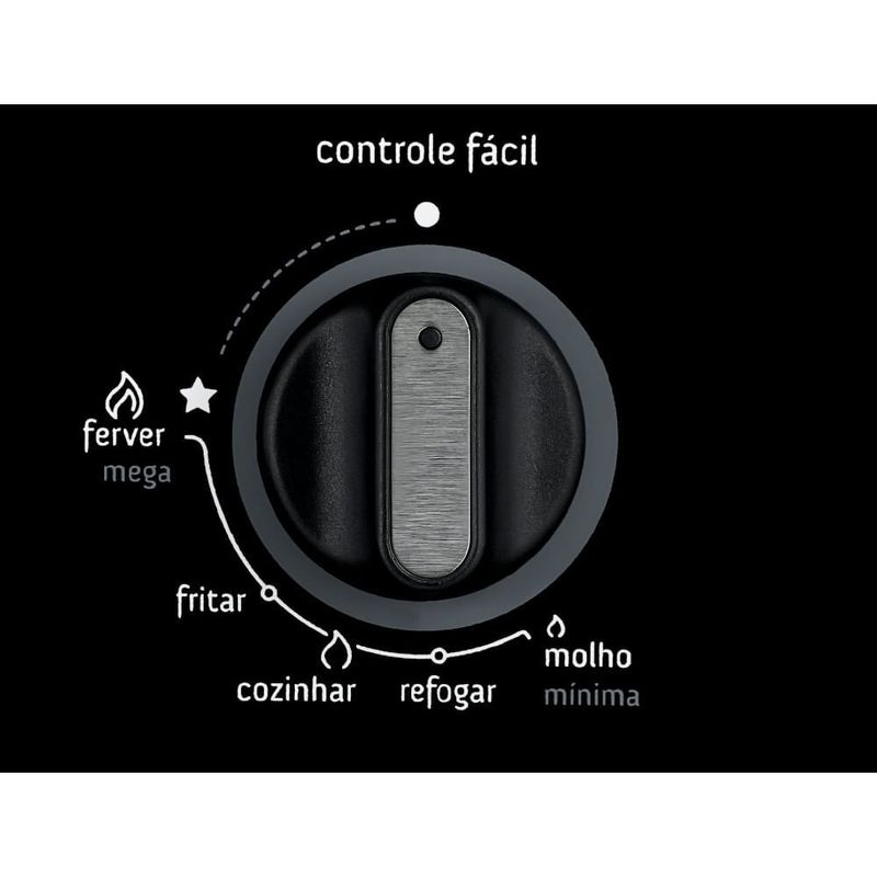 No cooktop há um botão especial, o “Controle Fácil”, que traz dicas de uso para cada tipo de preparo, indicando a potência ideal.