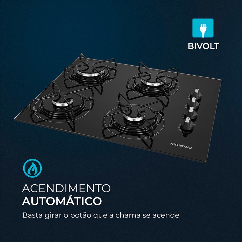 Cooktop a Gás Mondial 4 Bocas Preto/Inox CTG-01