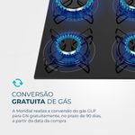 CONVERSÃO GRATUITA DE GÁS: Os Cooktops Mondial vêm de fábrica ajustados para funcionar com gás liquefeito de petróleo (GLP). A Mondial realiza, gratuitamente, a conversão do gás GLP para GN, uma vez e dentro do prazo de 90 dias, a partir da data de compra. Para solicitar, acesse: https://atendimentomondial.zendesk.com/hc/pt-br e encontre a autorizada Mondial mais próxima da sua casa!