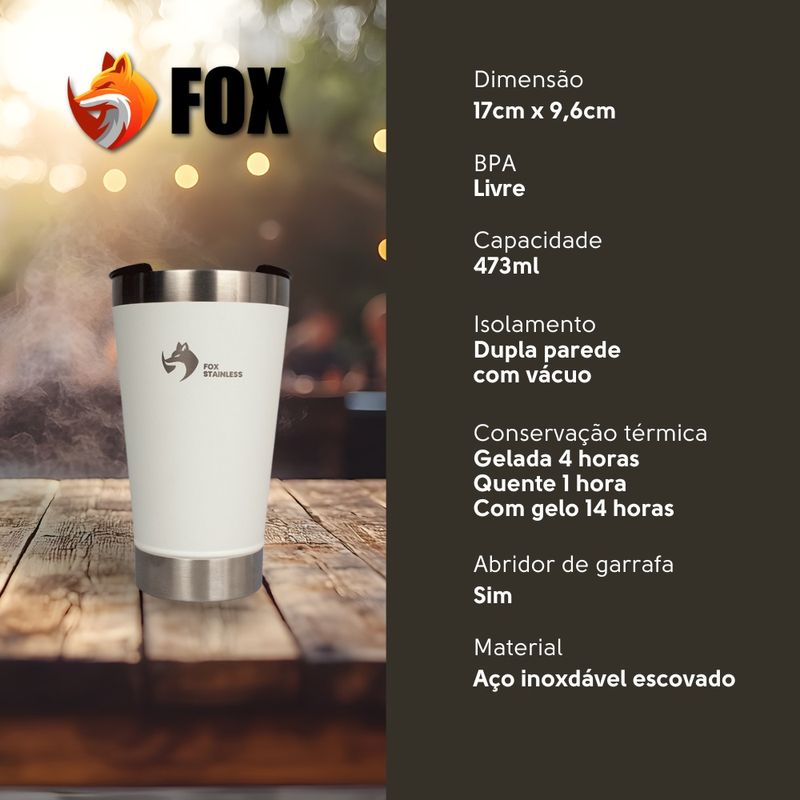 Copo Térmico Fox Stainless Quente e Frio 473ml Branco