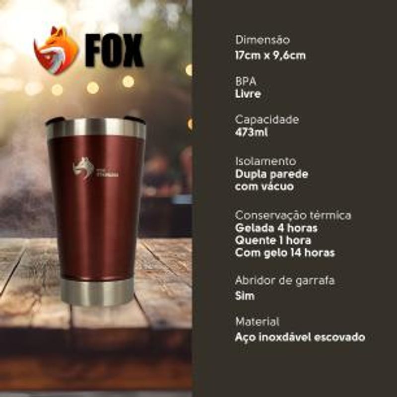 Copo Térmico Fox Stainless Quente e Frio com Tampa 473ml Vinho
