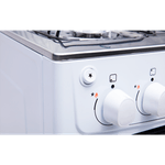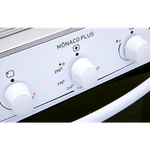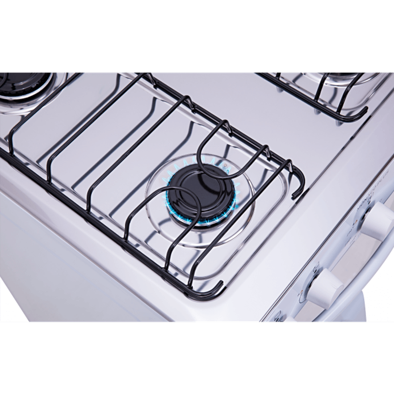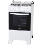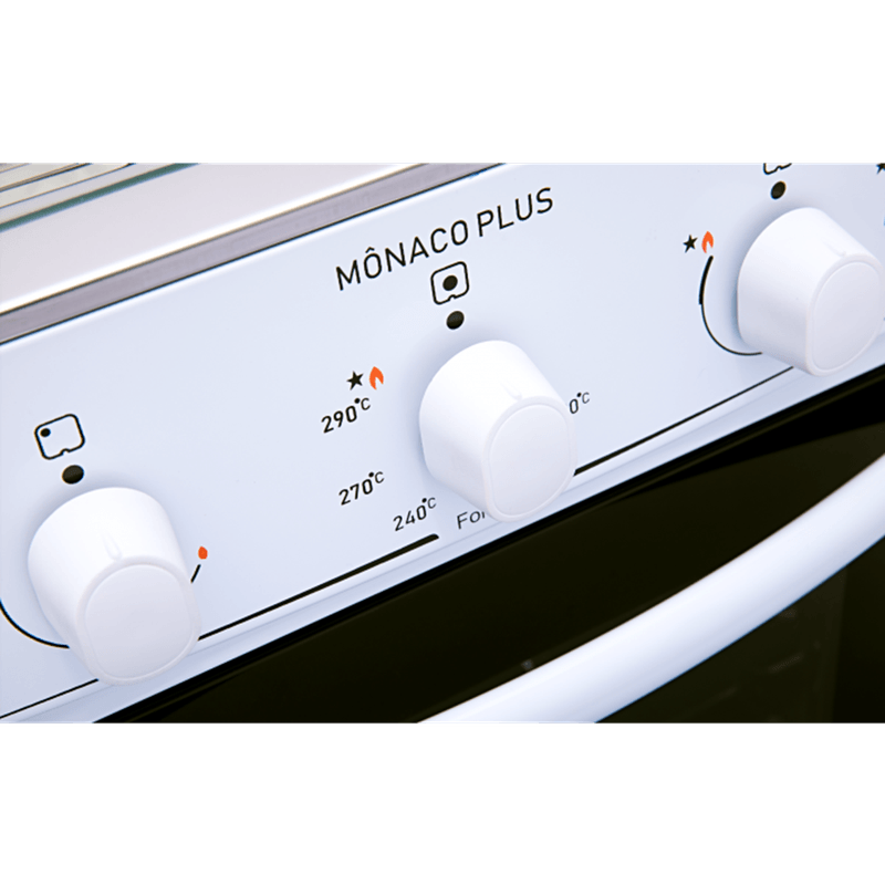 Possui mesa em inox, tampa de vidro na mesa, grades duplas de aço esmaltado, acendimento automático e botões removíveis – que facilita na hora da limpeza.