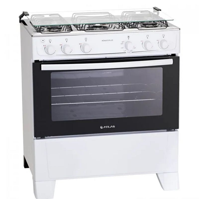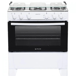 Fogão 5 Bocas Branco com Mesa Inox Atlas Mônaco Plus Bivolt