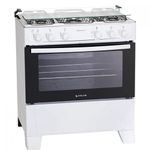 Possui mesa em inox, tampa de vidro na mesa, grades duplas de aço esmaltado, acendimento automático e botões removíveis – que facilita na hora da limpeza.