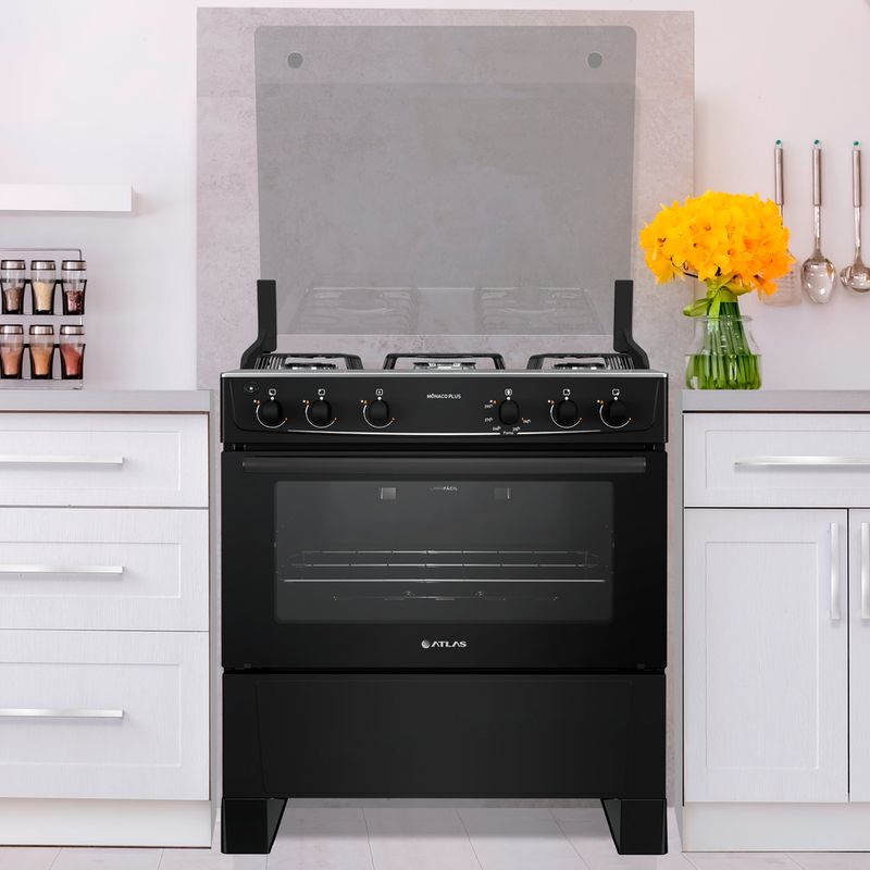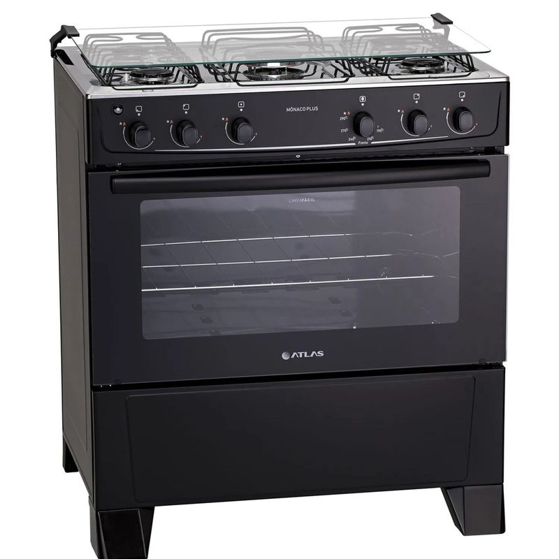 Fogão 5 Bocas Atlas Mônaco Plus Preto com Mesa Inox