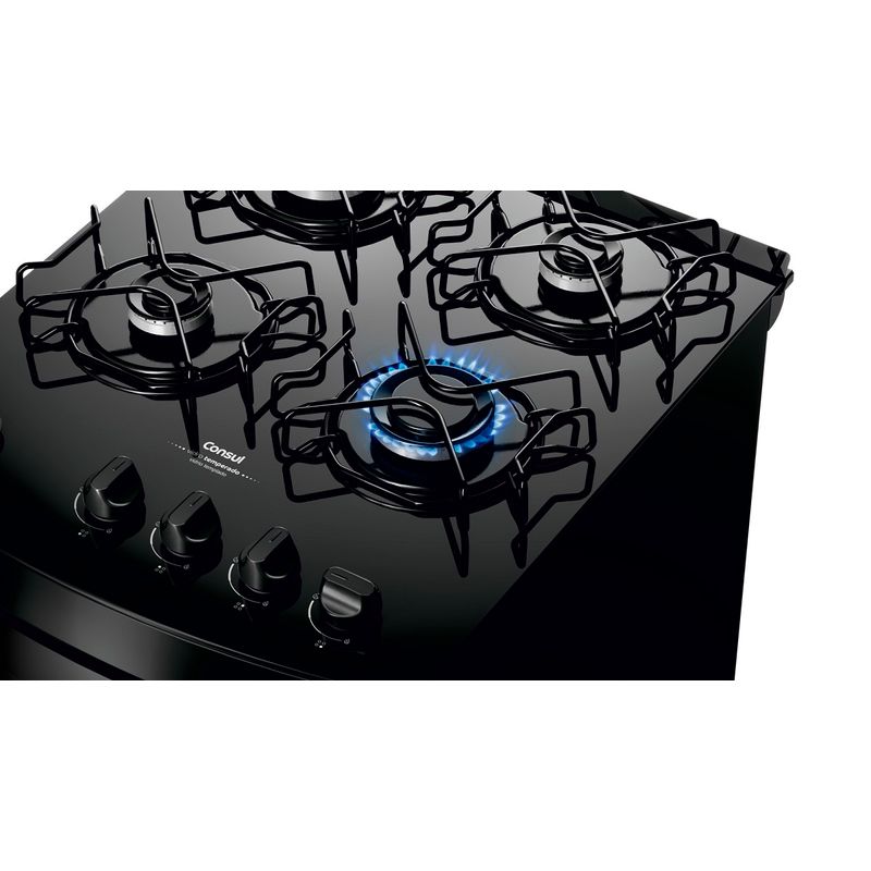 Fogão Consul 4 Bocas com Mesa de Vidro e Grades Individuais Super Estáveis Preto CFO4VBEUNA