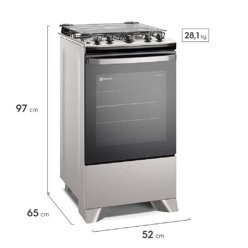 - Queimadores selados e botões removíveis: Bocas seladas e botões removíveis para menos esforço na limpeza do fogão.