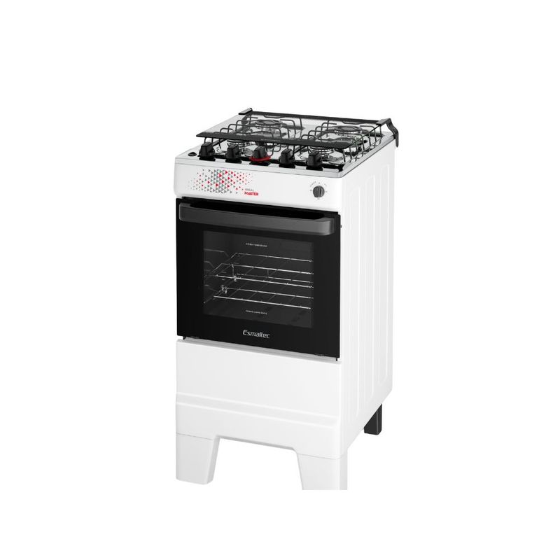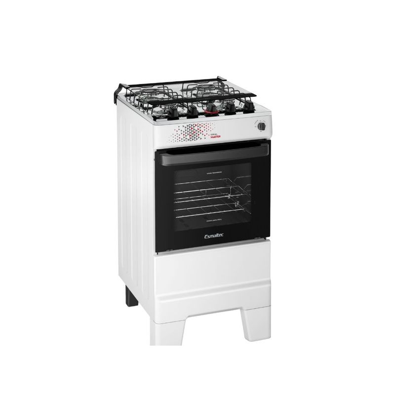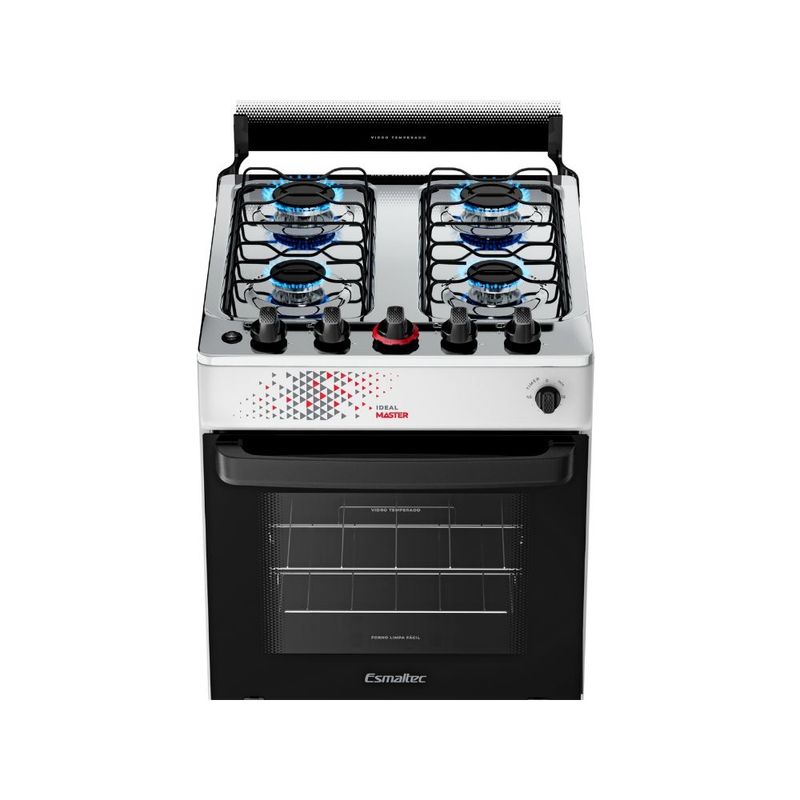 Fogão Esmaltec 4 Bocas Ideal Master Mesa Inox Tampa de Vidro Forno 50 Litros Branco T4ITB