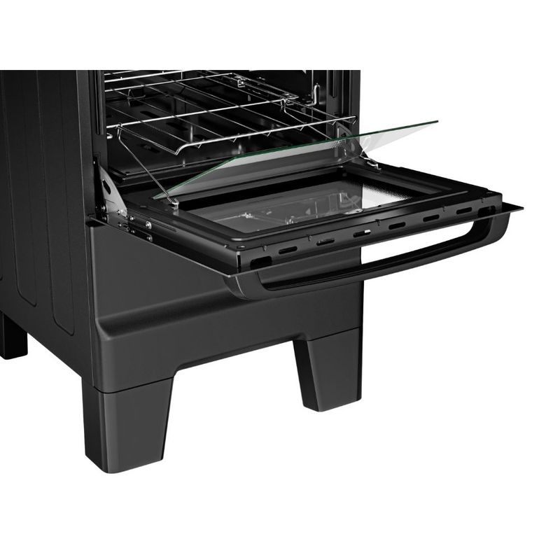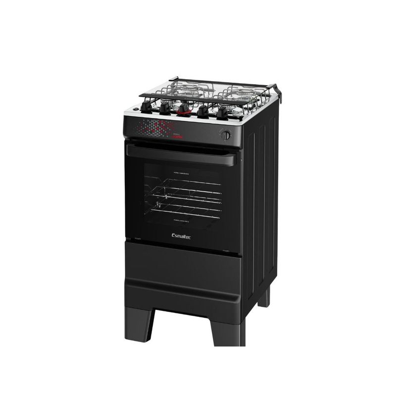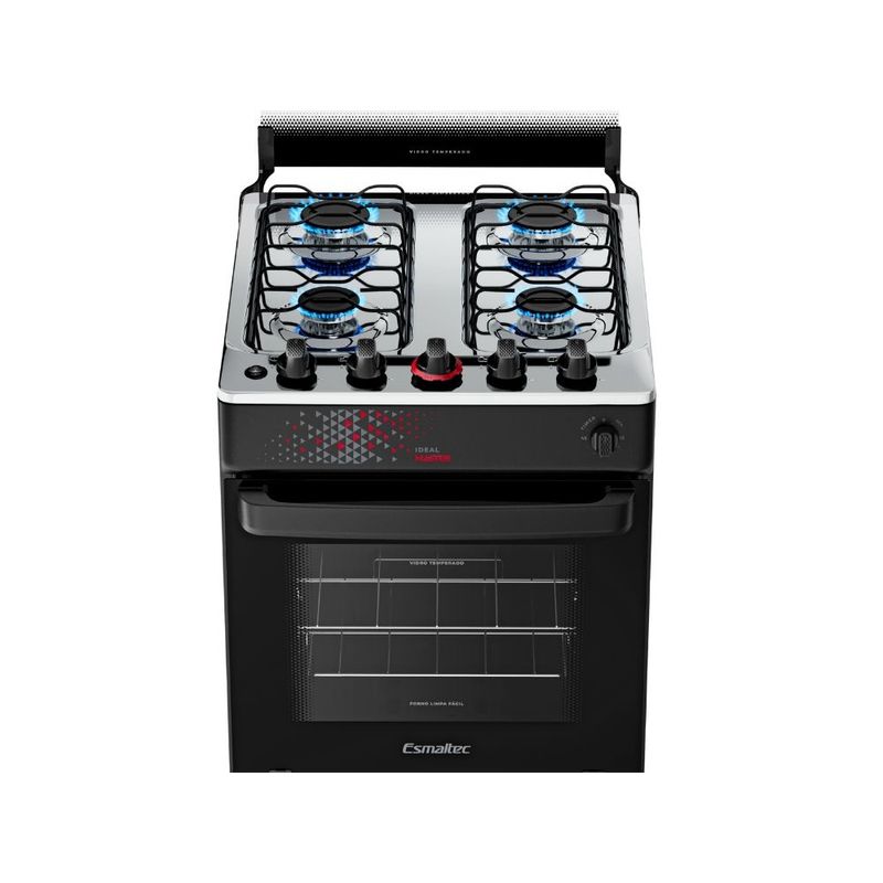 Fogão Esmaltec 4 Bocas Ideal Master Mesa Inox Tampa de Vidro Forno 50 Litros Preto T4ITP