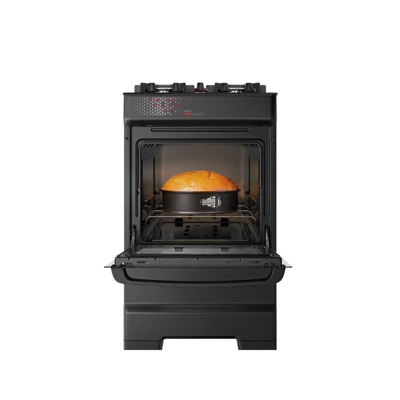 Fogão Esmaltec 4 Bocas Ideal Top Mesa de Vidro Forno 50 Litros Preto T4VAP