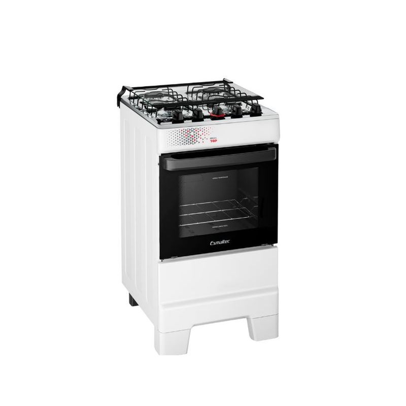 Fogão Esmaltec 4 Bocas Ideal Top Mesa Inox Tampa de Vidro Forno 50 Litros Branco T4IAB
