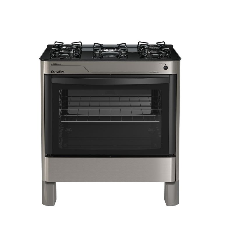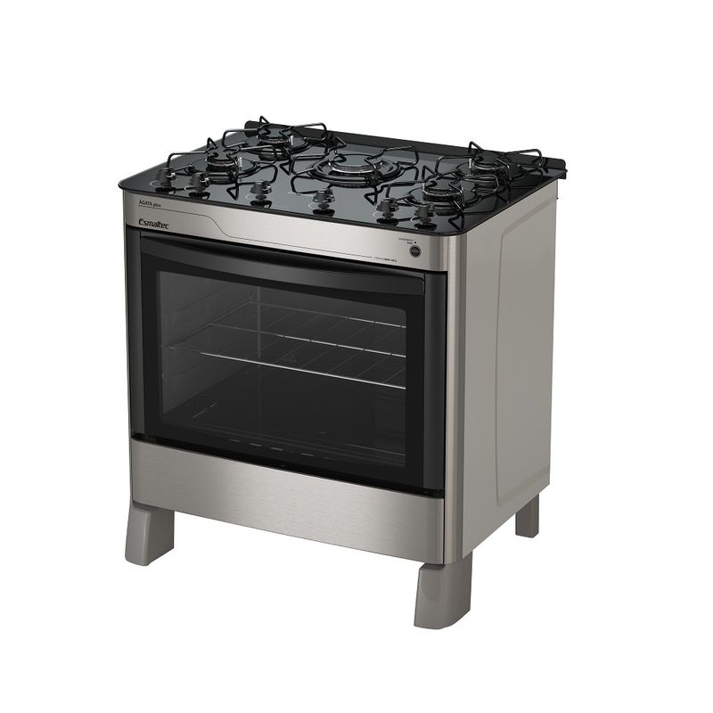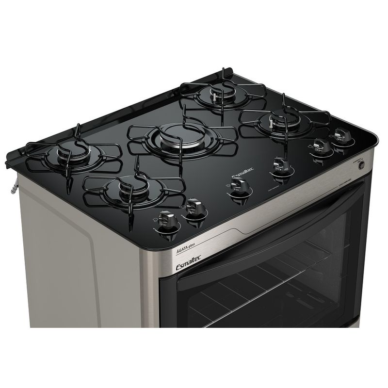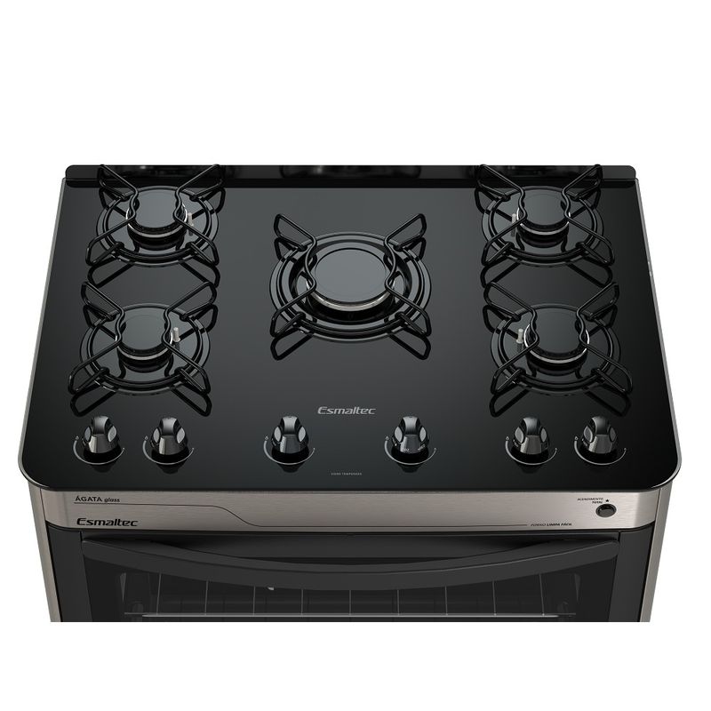 Fogão Esmaltec 5 Bocas Agata Glass Mesa de Vidro Temperado Inox