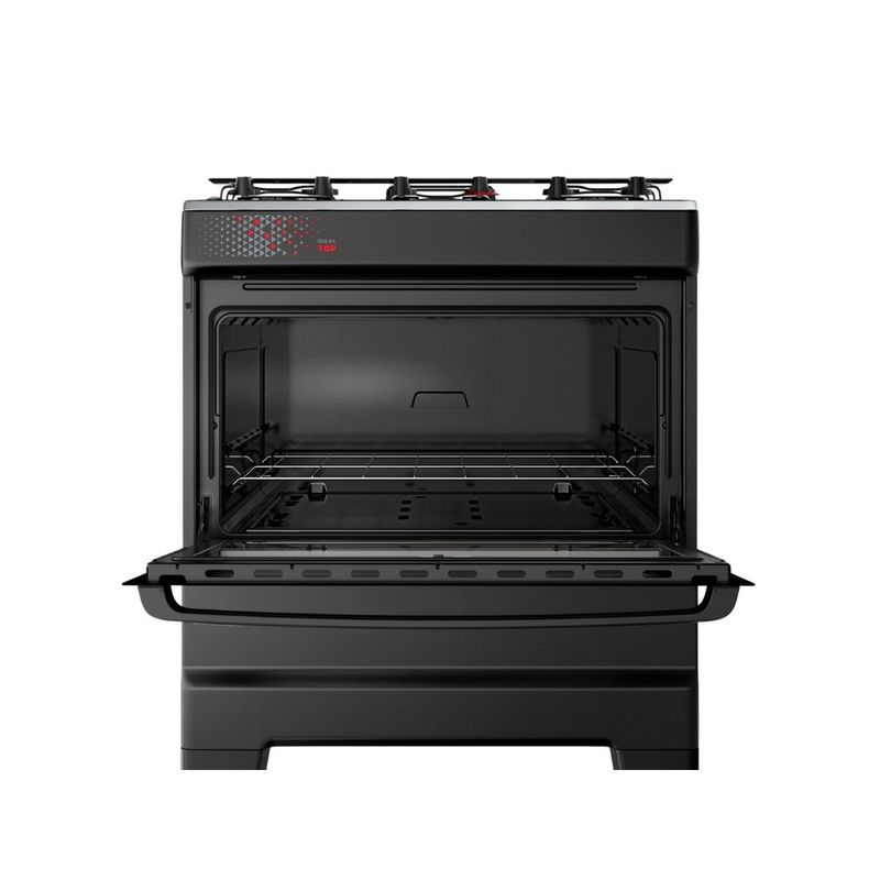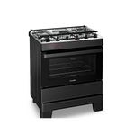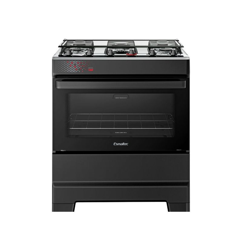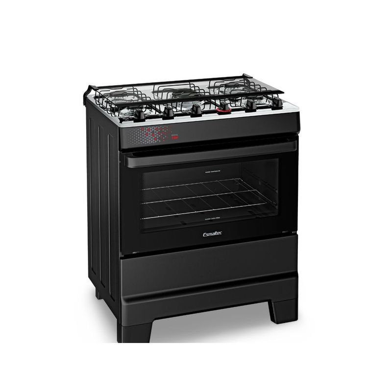 Fogão Esmaltec 5 Bocas Ideal Top Mesa Inox Tampa de Vidro Forno 84 Litros Preto T5IAP