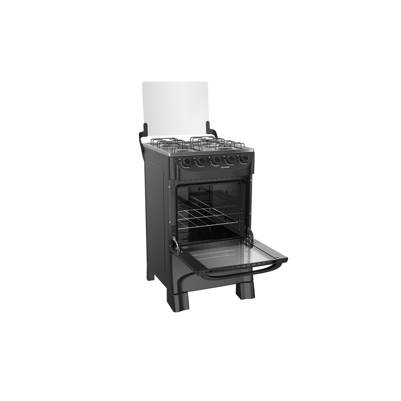 O Fogão 4 bocas Mueller MFI4BA preto fosco será seu aliado na hora de preparar as receitas que sua família adora e ainda ficará um charme na sua cozinha. Conte com chamas fortes para ter mais agilidade no preparo das refeições. E para facilitar a visualização das receitas preparadas no forno do fogão a gás, a porta do forno tem um amplo visor panorâmico. É será que é fácil de limpar? O fogão 4 bocas Mueller foi desenvolvido para deixar tudo mais fácil e rápido. Os botões são no formato redondo, sem frestas e sem acúmulo de sujeira, as grades da mesa e o interior do forno são revestidos com um esmalte liso e durável Total Clean, que garante uma limpeza sem esforço. E os pés são mais altos, tornando mais fácil a limpeza da sua cozinha. Tudo isso para facilitar a sua rotina e ter mais tempo para aproveitar com o que realmente importa.