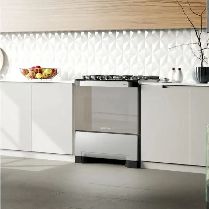O Decorato Vetro possui o design e a beleza da mesa de vidro, e eficiência em um só fogão. Você encontra diferentes potências de chamas e excelente performance para explorar as mais variadas receitas. Se você ama uma receita bem executada e quer uma cozinha sofisticada, este fogão 5 bocas inox com porta de vidro espelhado é ideal para você.
