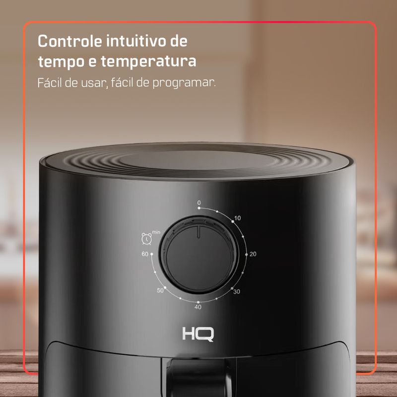 A Air Fryer HQ 2,8L combina design compacto, operação intuitiva e baixo consumo de energia, sendo a escolha ideal para consumidores que valorizam refeições mais saudáveis e práticas.