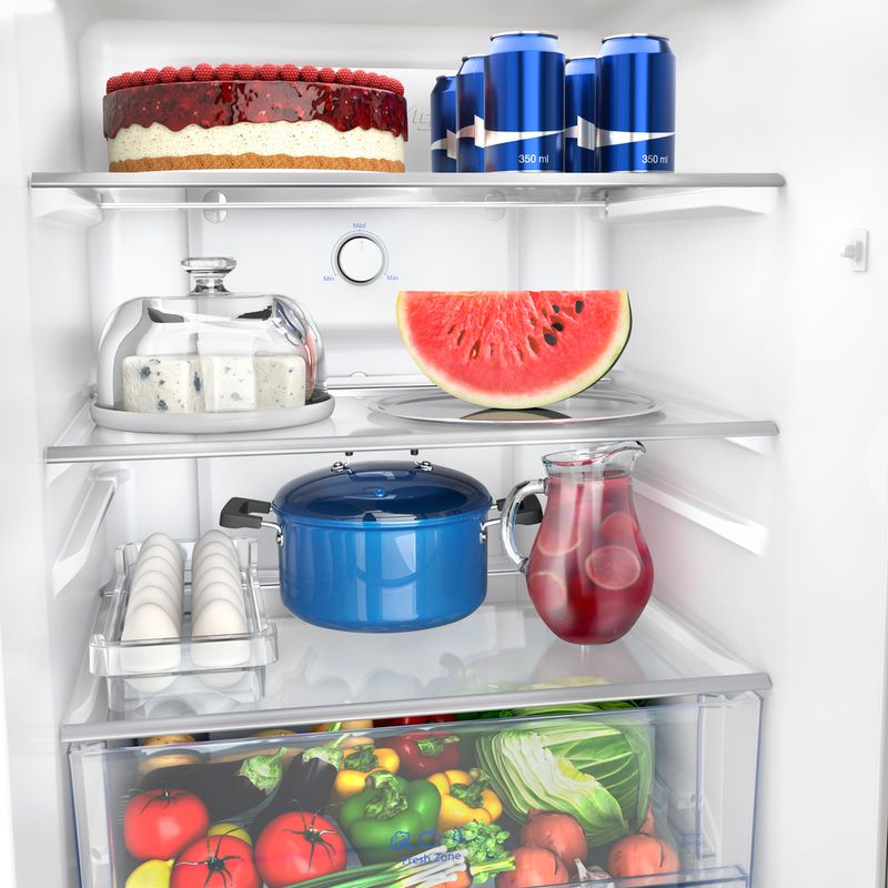 Além de economizar até 40% energia, o sistema Inverter deixa sua geladeira mais silenciosa e com congelamento de alimentos mais rápido. A tecnologia regula o compressor de acordo com a temperatura que varia com o abre e fecha da porta e com a quantidade de comida.