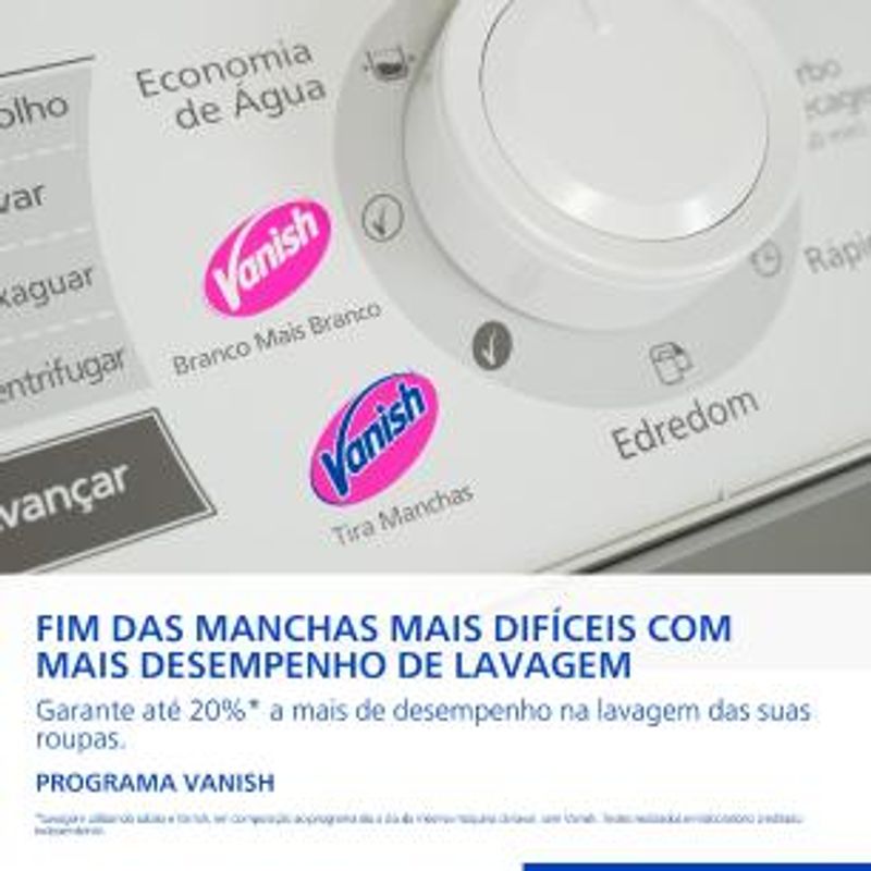 Com o exclusivo programa Vanish e Vanish Branco mais Branco garantimos até 20% a mais de desempenho na lavagem potencializando o uso do tira manchas.