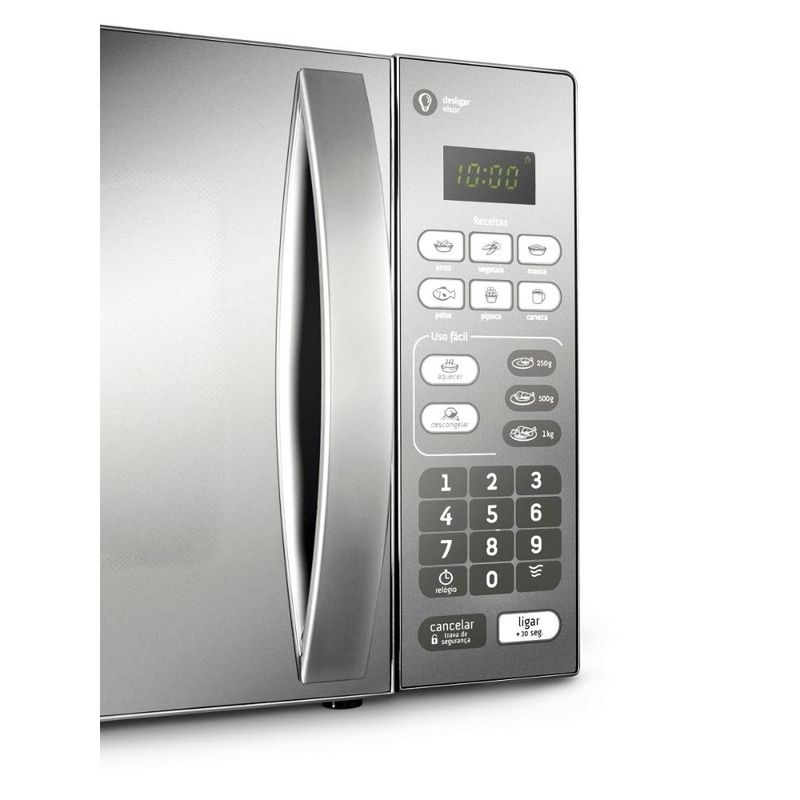 Micro-ondas CM020 Consul Espelhado 20 litros. Compacto e moderno, ele possui o Menu Uso Fácil e receitas pré-programadas que descomplicam o seu dia-a-dia. Descongelar a carne do almoço, preparar o lanche das crianças, aquecer o jantar. Com ele você faz tudo isso e muito mais em questão de minutos. É tão fácil que até parece mágica: com apenas um toque você consegue preparar massas, pipoca e até vegetais. Possui ainda porta espelhada com puxador, 10 opções de potência para você preparar sua refeição na medida certa, opção desliga visor que proporciona uma economia de até 12% de energia desligando o visor luminoso e comando cancelar que além de interromper o preparo, também serve para travar o teclado e deixar sua cozinha mais segura.