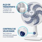 ALÇA DE TRANSPORTE + PORTA-FIO: Além do design compacto, a alça traseira permite que o ventilador seja transportado entre os cômodos da casa com facilidade. Com o porta-fio embutido, você armazena o fio elétrico dentro do aparelho após o uso.